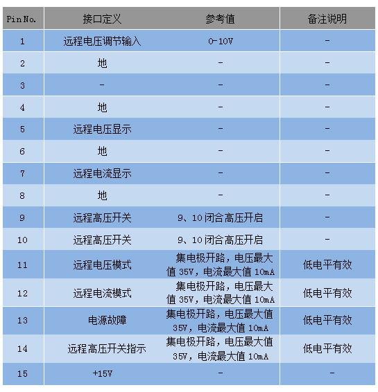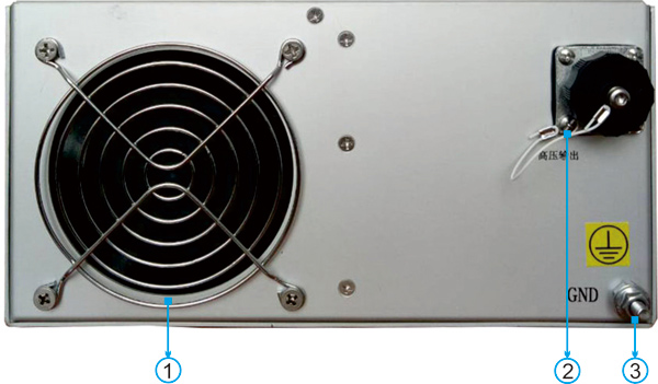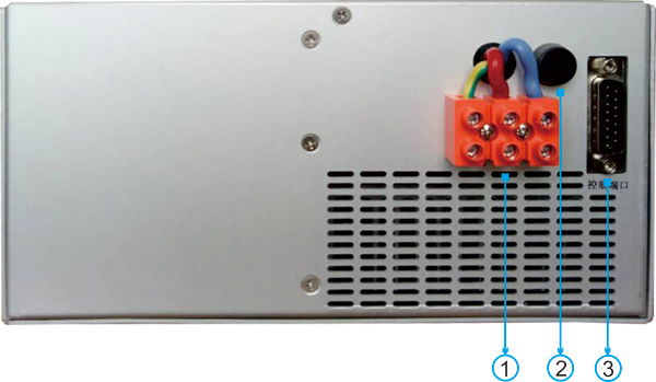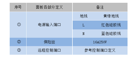 該電源前面板由電源輸入端口、保險(xiǎn)絲、遠(yuǎn)程控制端口組成。